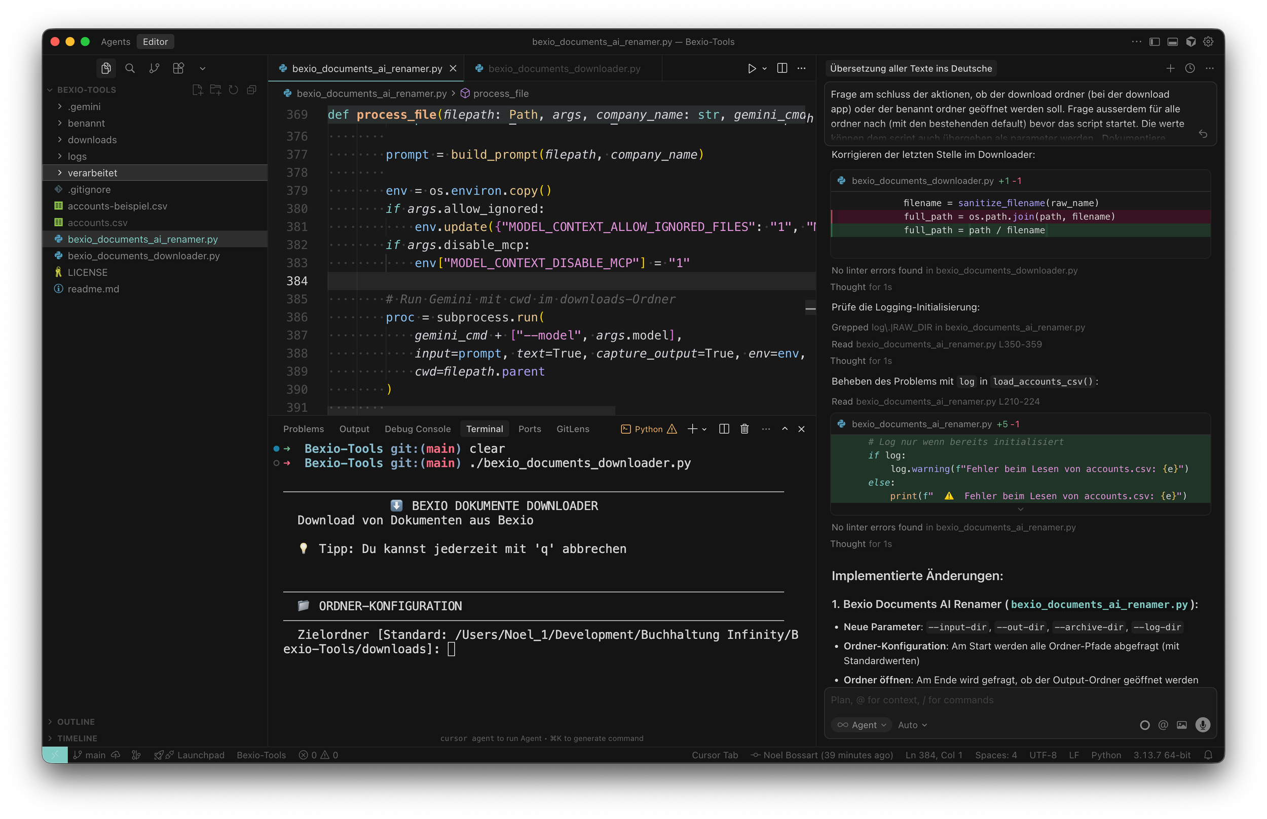 Tool 1: Automatischer Belege-Downloader Holt alle Dokumente aus Bexio per API - kein manuelles Klicken mehr nötig. Mittels AI haben wir dabei eine bestehende aber Open Source Applikation mit Microsoft Technologie in Sekunden in ein Plattform unabhängiges Script umgewandelt – und verbessert.